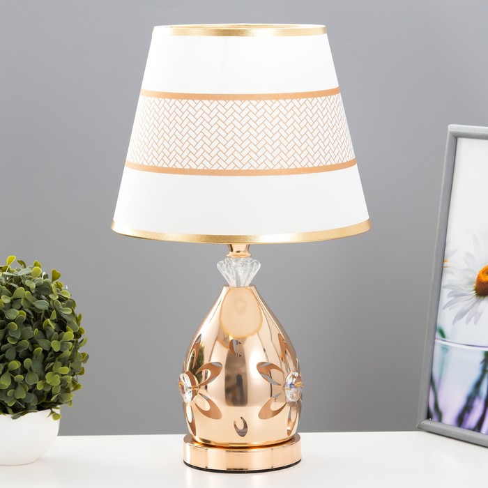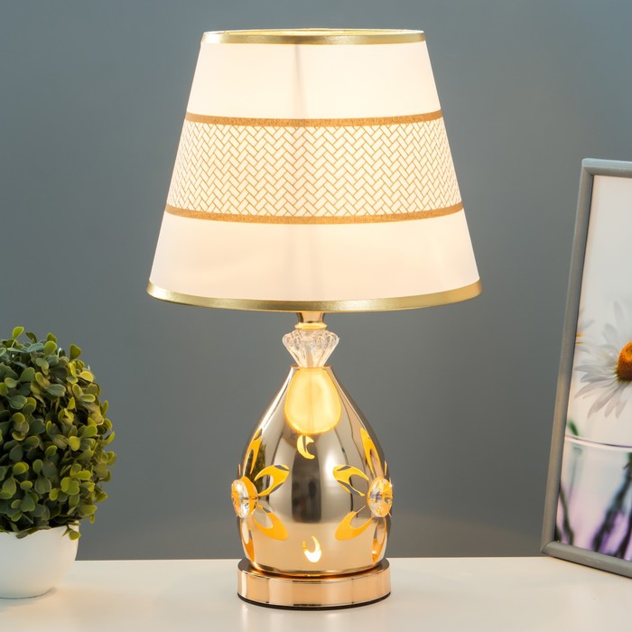 - Металлическое основание золотого цвета придаёт лампе роскошный вид и легко сочетается с разными стилями оформления.