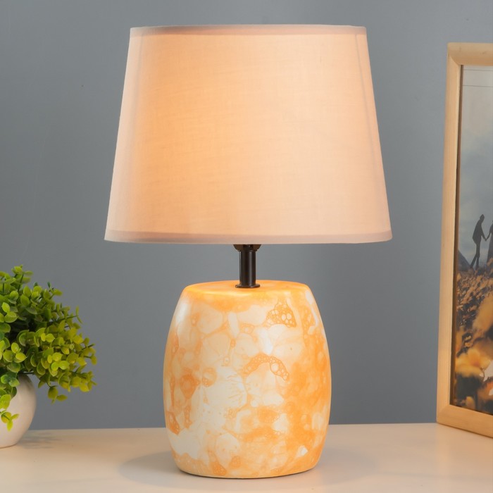 Эта настольная лампа с ярким оранжевым основанием станет настоящим акцентом в вашем интерьере. Керамическое основание и текстильный абажур в светлых тонах создают атмосферу уюта и тепла. Высота 33 см позволяет удобно разместить её на столах и тумбах, обеспечивая мягкое освещение для чтения или отдыха.