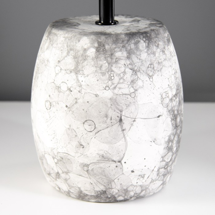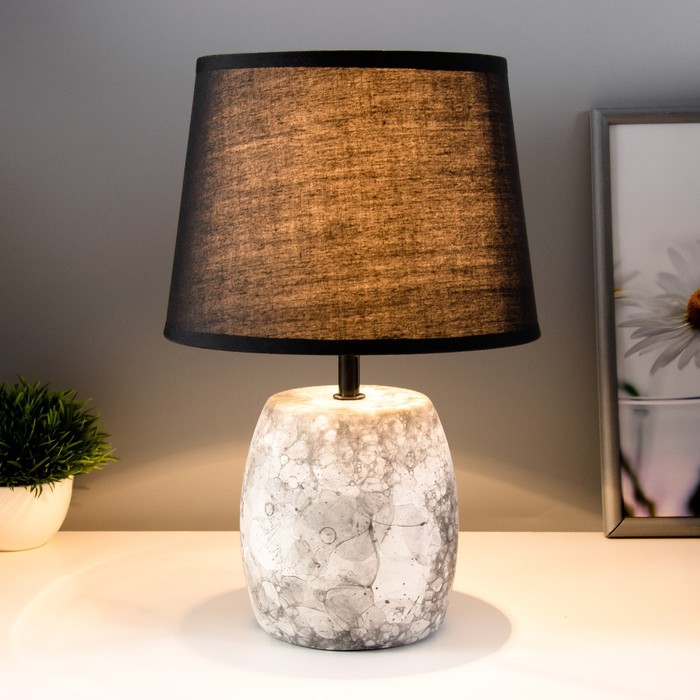 Эта настольная лампа с серым керамическим основанием станет стильным дополнением вашего интерьера. Текстильный абажур в тёмных тонах создаёт атмосферу уюта и элегантности. Высота 33 см позволяет удобно разместить её на столах и тумбах, обеспечивая мягкое освещение для чтения и отдыха.