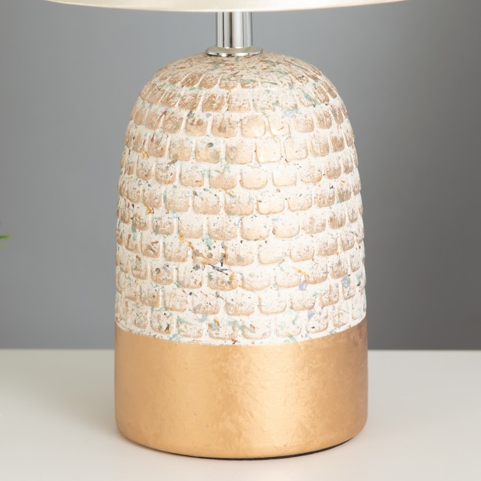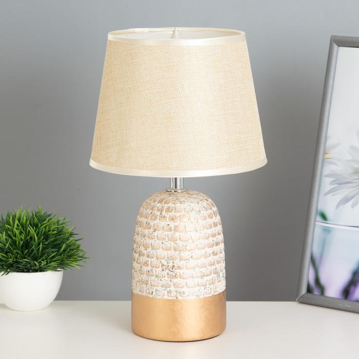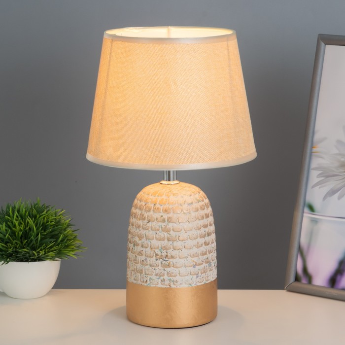 Элегантная настольная лампа в бежево-золотистом цвете станет стильным акцентом в вашем интерьере, добавляя нотки классики и уюта. С её текстильным абажуром, направляющим свет вверх, вы получите мягкое и комфортное освещение, идеально подходящее для чтения или создания романтической атмосферы.