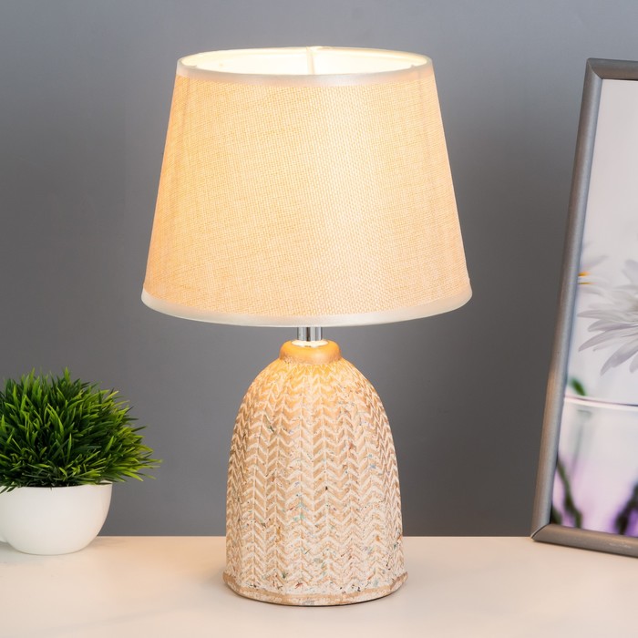 Эта настольная лампа с утончённым дизайном станет привлекательным элементом вашего интерьера. Бежевое керамическое основание и текстильный абажур в светлых тонах создают атмосферу тепла и уюта. Высота 33 см делает её идеальным решением для размещения на столах и тумбах, обеспечивая мягкое и комфортное освещение.