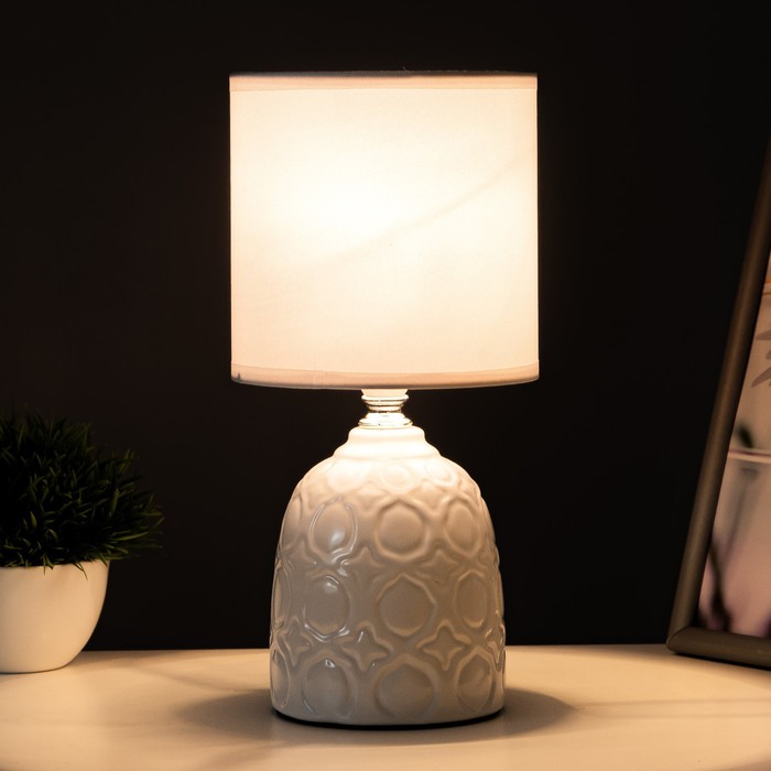 Эта настольная лампа с простым и стильным дизайном станет отличным дополнением вашего интерьера. С высотой всего 25 см и компактными размерами 13×13 см, она идеально подходит для освещения столов, тумбочек или рабочих зон. Белое керамическое основание и текстильный абажур создают мягкое и уютное освещение, придавая комнате атмосферу комфорта.