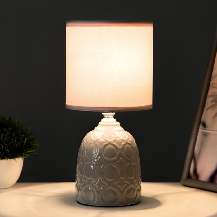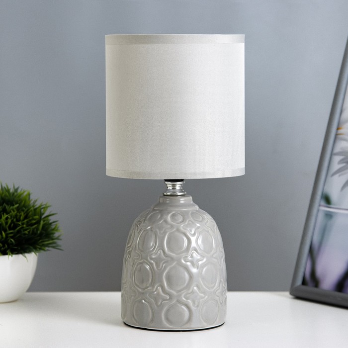 Эта настольная лампа с современным дизайном станет стильным акцентом в вашем интерьере. С высотой 25 см и размерами 13×13 см, она идеально подходит для освещения столов, тумбочек и рабочих зон. Серое керамическое основание и текстильный абажур создают мягкое и приятное освещение, добавляя уют в любое помещение.