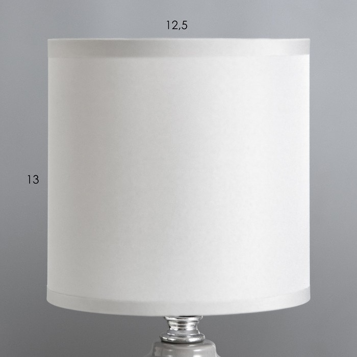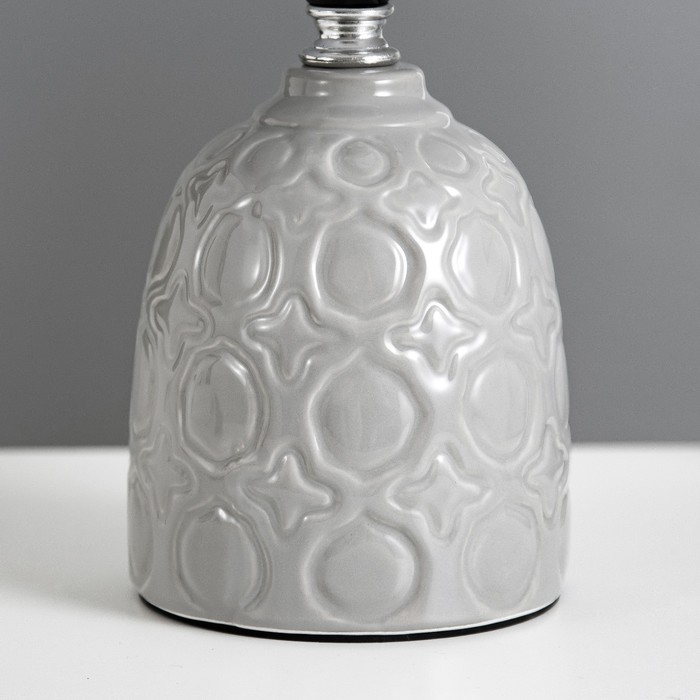 - Текстильный абажур в серых тонах создает мягкое рассеянное освещение.