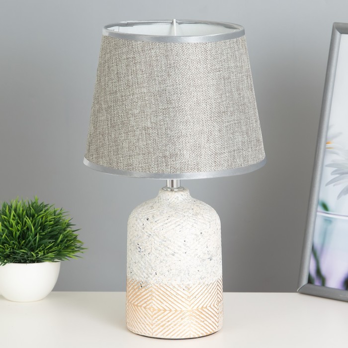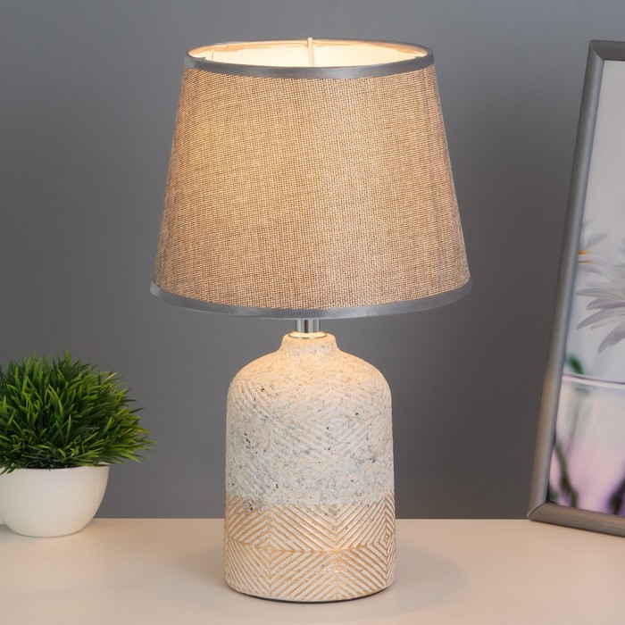 Эта настольная лампа станет идеальным решением для создания уютной атмосферы в вашем доме. С высотой 33 см и размерами 20×20 см, она прекрасно впишется в любой интерьер, будь то рабочий стол, прикроватная тумбочка или уютный уголок для чтения. Бежевое керамическое основание в сочетании с серым текстильным абажуром придаёт изделию стильный и современный вид.