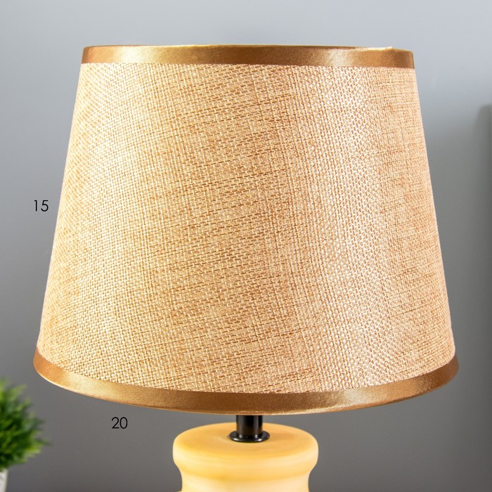 - Трапециевидный текстильный абажур в светлых тонах создает приятное рассеянное освещение.