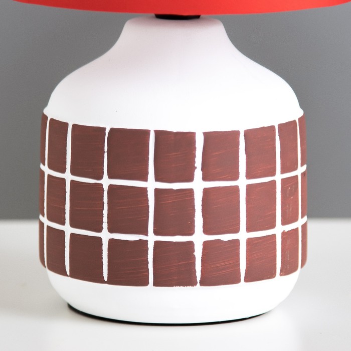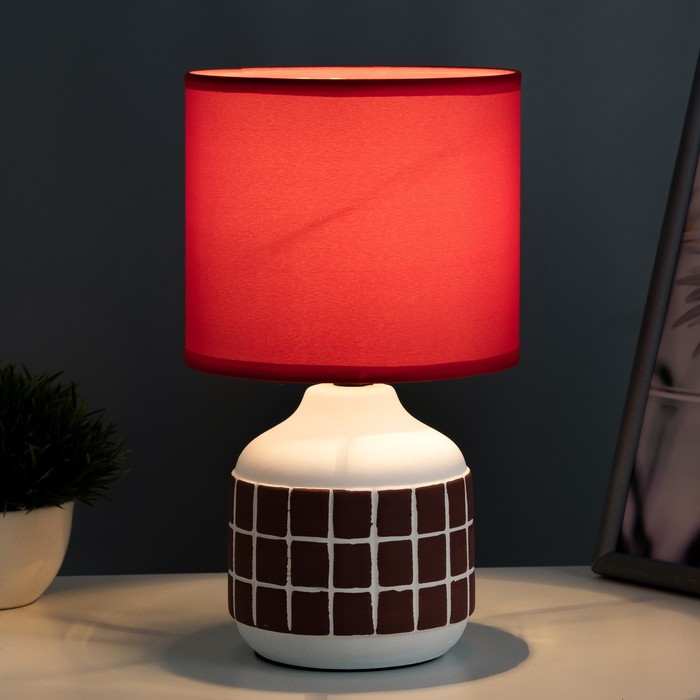 Эта настольная лампа станет ярким акцентом в вашем интерьере, добавляя стиль и уют. Керамическое основание в белом и красном цветах гармонично сочетается с текстильным абажуром, создавая атмосферу тепла и комфорта.