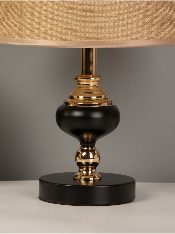 Эта стильная настольная лампа в черно-золотом исполнении станет изысканным акцентом в вашем интерьере. С её помощью вы сможете создать атмосферу уюта и элегантности, идеально подходящую для кабинета или гостиной. Лампа не только освещает пространство, но и служит эффектным декоративным элементом.