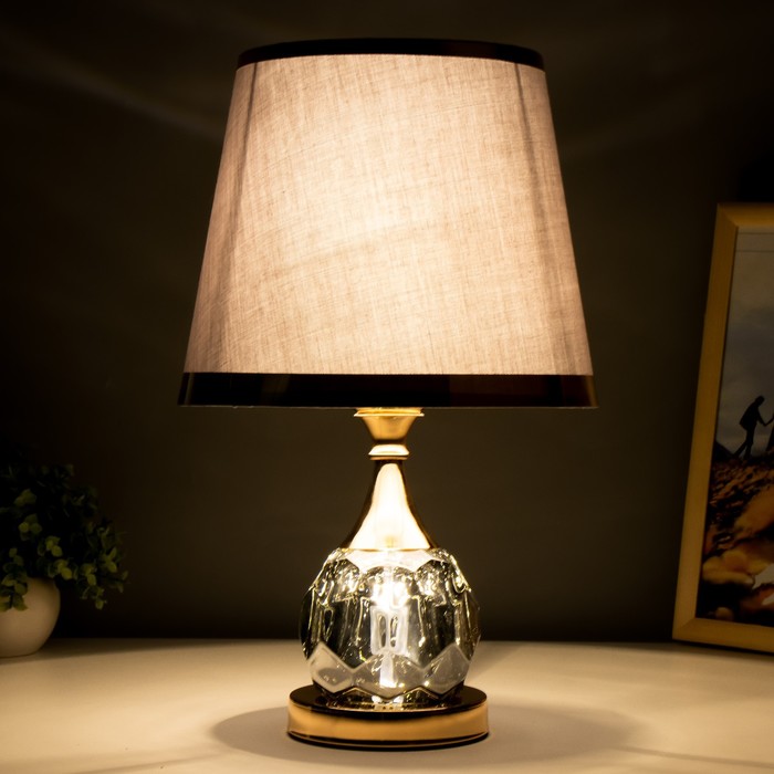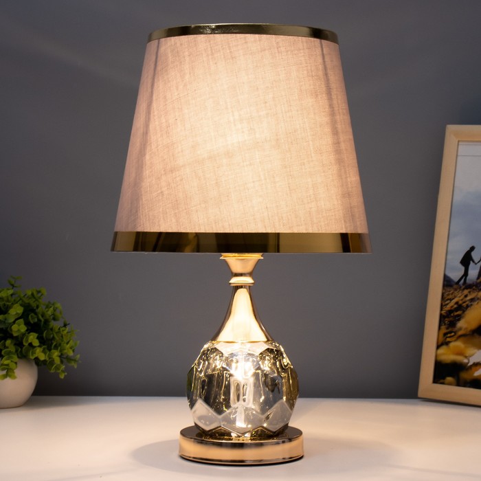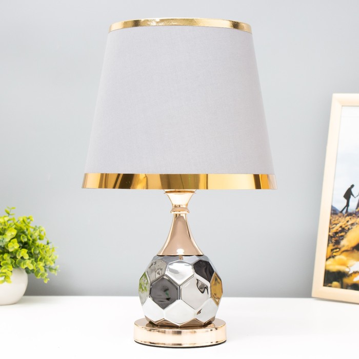 Эта настольная лампа станет отличным дополнением вашего интерьера, привнося в него нотки классики и утонченности. Золотое основание в сочетании с хромированными элементами и светло-серым текстильным плафоном создают стильный и гармоничный образ, подходящий для различных стилей оформления.