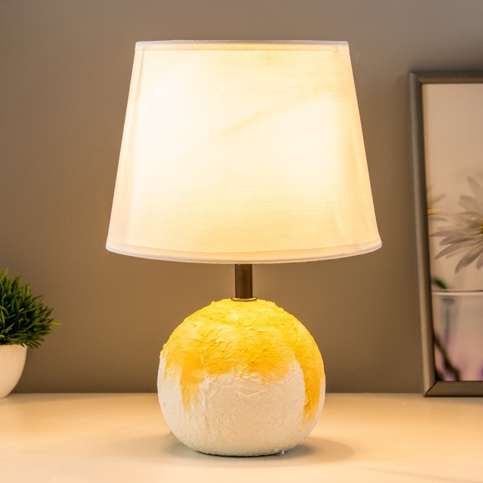 Эта настольная лампа станет идеальным дополнением вашего интерьера, привнося уют и стиль. С белым керамическим основанием и текстильным абажуром в светлых тонах, она отлично впишется в классический дизайн вашего дома или офиса. Благодаря цоколю E14, вы сможете выбрать лампу по своему вкусу.