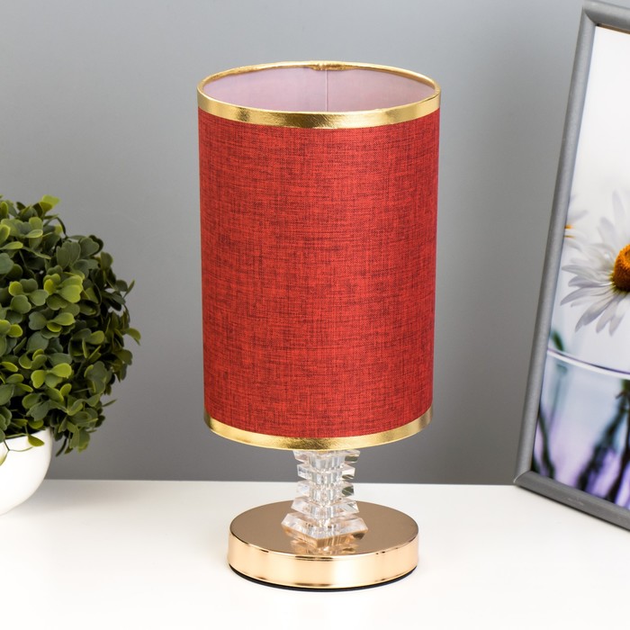 Эта настольная лампа с золотым основанием станет изысканным дополнением вашего интерьера. Она идеально подходит для создания уютной атмосферы в любом помещении, добавляя нотку классики и элегантности. Цилиндрический текстильный абажур в бордовых тонах мягко рассеивает свет, создавая приятное освещение для чтения или отдыха.