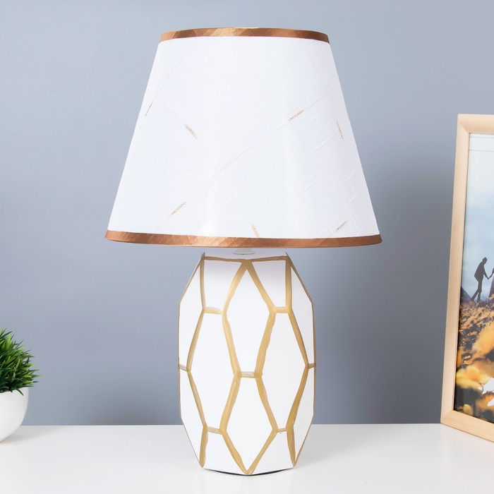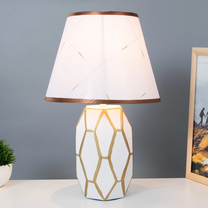 Эта элегантная настольная лампа станет изысканным акцентом в вашем интерьере. С высотой 39 см и размерами 20×25 см, она идеально подойдет для создания уютной атмосферы в любом помещении. Золотое и белое керамическое основание в сочетании с текстильным абажуром придает ей классический стиль, а светлые тона рассеивателя обеспечивают мягкое и комфортное освещение.