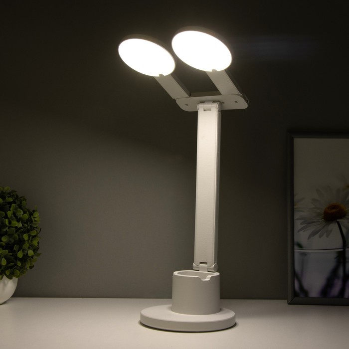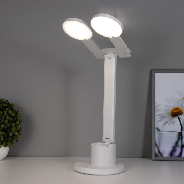 Настольная лампа сенсорная "Круги" с органайзером LED 20Вт АКБ USB белый 44х36х15 см RISALUX 78003