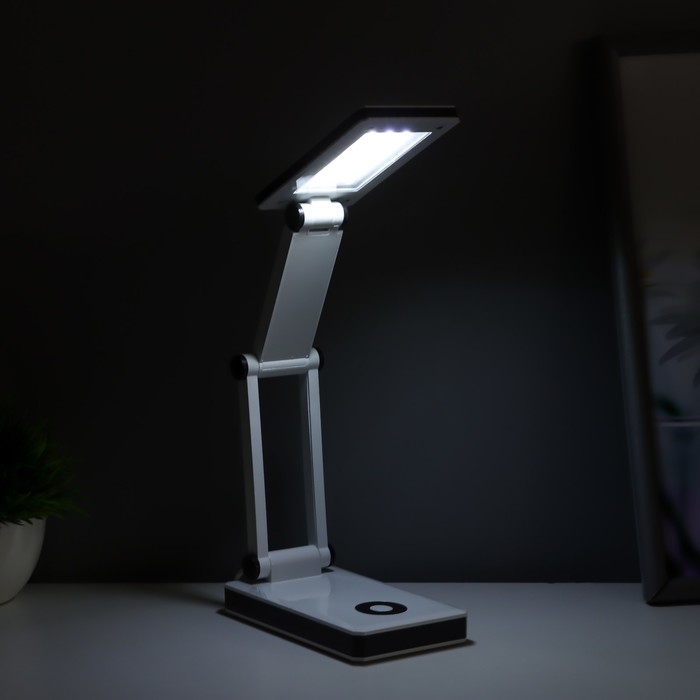 Это не просто настольная лампа — это настоящий трансформер. Она мобильна и компактна, имеет подвижные части корпуса, которые складываются и раскладываются. В том числе плафон, который поднимается и опускается на достаточную для глаз высоту.