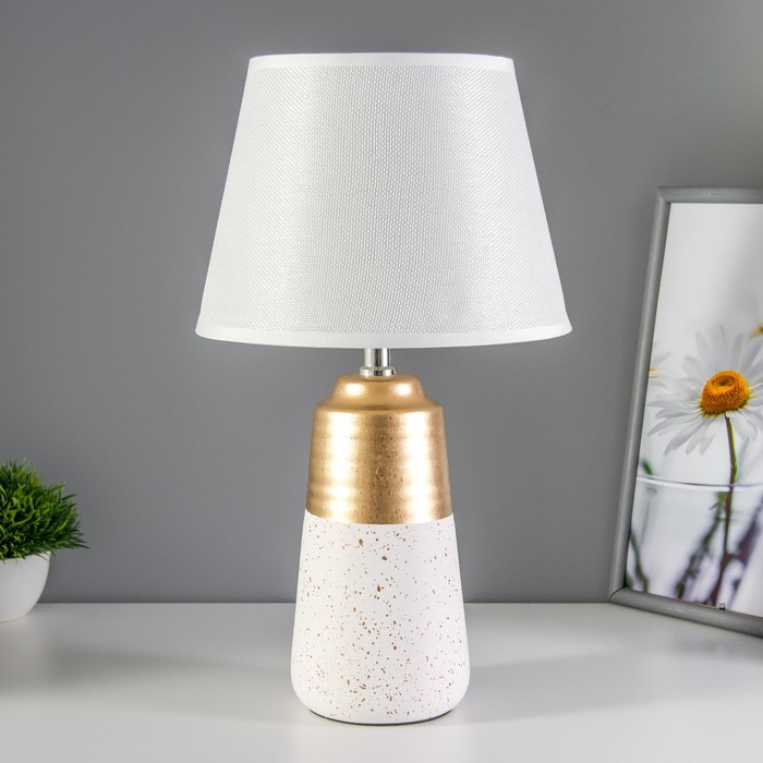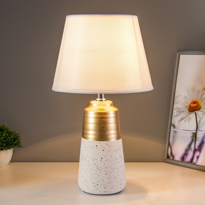 Эта настольная лампа станет прекрасным дополнением вашего интерьера, сочетая в себе элегантность и современность. С её золотым и белым основанием, она придаст вашему пространству стильный акцент и уютное освещение.
