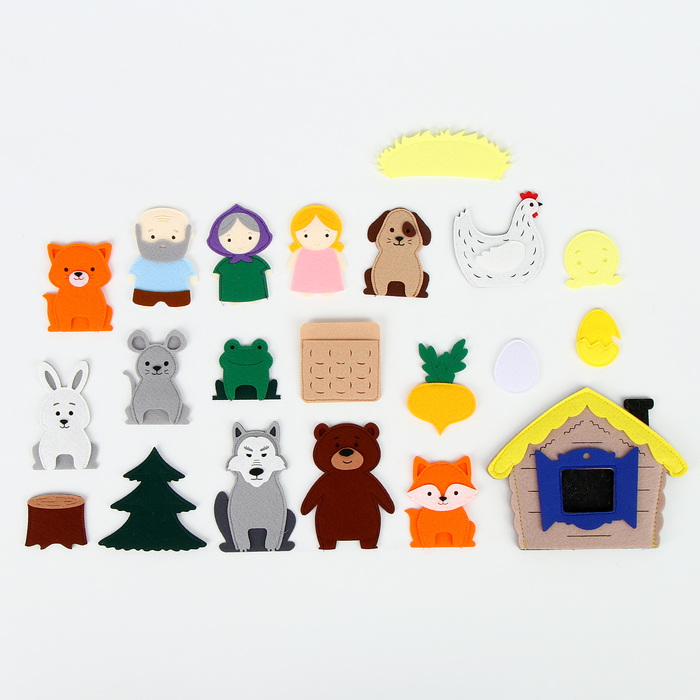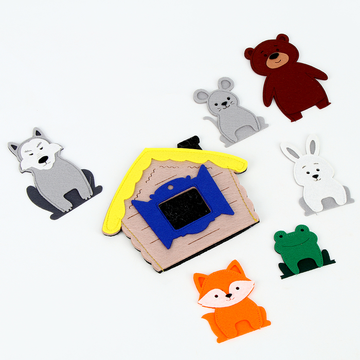 - Каждого персонажа можно установить на деревянные подставки и расставить на сцене, надеть на пальчики ребёнка и устроить театральную импровизацию или сюжетную игру вместе с домиком-декорацией.