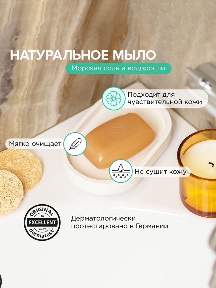 Натуральное кусковое туалетное мыло SYNERGETIC "Морская соль и водоросли" - средство для мягкого очищения и ухода за кожей, более чем на 99% состоящее из натуральных компонентов. Мыло имеет натуральную основу, изготовленную из растительных масел, которые бережно воздействуют на кожу, предохраняя от пересушивания при частом мытье рук. Натуральные эфирные масла и экстракты оказывают дополнительный уход и восстановление, а зелёные хелаты не наносят вред окружающей среде. Пантенол - незаменимый по эффективности компонент для защиты сухой и чувствительной кожи, он усиливает действие увлажняющих компонентов и способствует восстановлению барьерных функций. Парфюмерная композиция на основе натуральных эфирных масел эвкалипта, апельсина и пачули оставляет на коже освежающий аромат. Нанести на влажную кожу, вспенить и смыть водой. Только для наружного применения. Беречь от детей. При попадании средства в глаза промыть водой. Использовать строго по назначению. Aqua, Polyglyceryl-3 Cetyl Ether Olivate/Succinate, Vitis Vinifera (Grape) Seed Oil, Cocos Nucifera Oil, Coco-Caprylate/Caprate, Isoamyl Laurate, Propanediol, Glycerin, Betaine, Niacinamide, Trehalose, Sodium Hyaluronate, Tocopheryl Acetate, Xanthan Gum, Behenyl Alcohol, Glyceryl Stearate, Saccharide Isomerate, Oryza Sativa (Rice) Starch, Parfum, Benzyl Alcohol, Glyceryl Laurate, Lactic Acid, Citric Acid, Sodium Citrate.