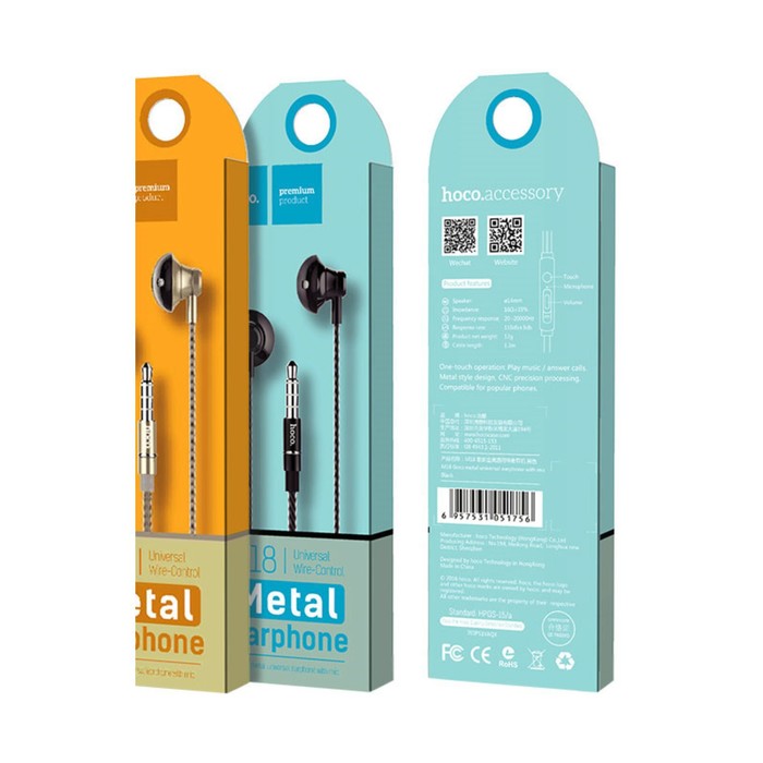 Универсальная гарнитура Hoco M18 оснащена встроенным микрофоном и пультом управления. Вы сможете регулировать громкость с помощью джойстика, принимать звонки, останавливать или возобновлять воспроизведение одним нажатием кнопки. Аксессуар подойдёт для всех моделей смартфонов с разъёмом mini-jack 3,5 мм.