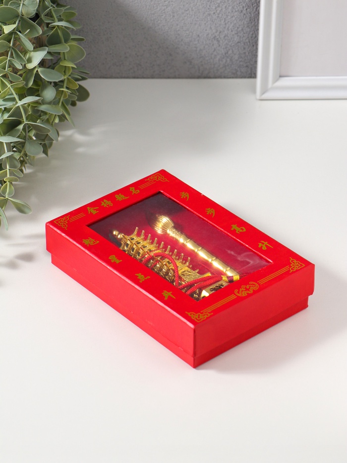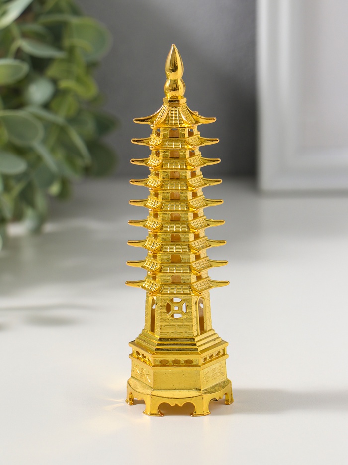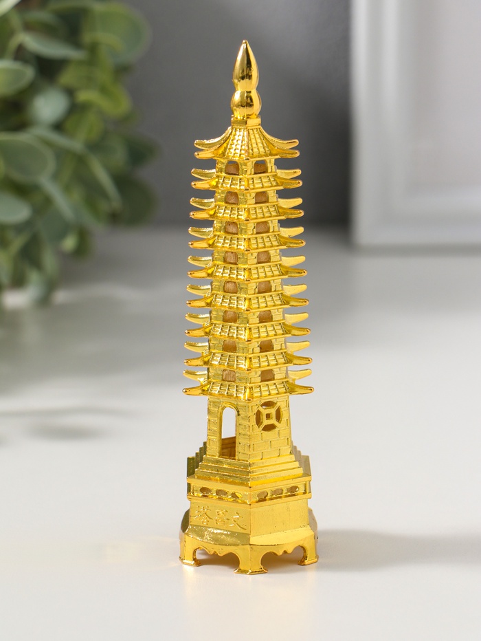 Нэцкэ металл "Пагода литературы" золото набор 2 шт 3,8х3,8х13,5 4х12х17,5 см