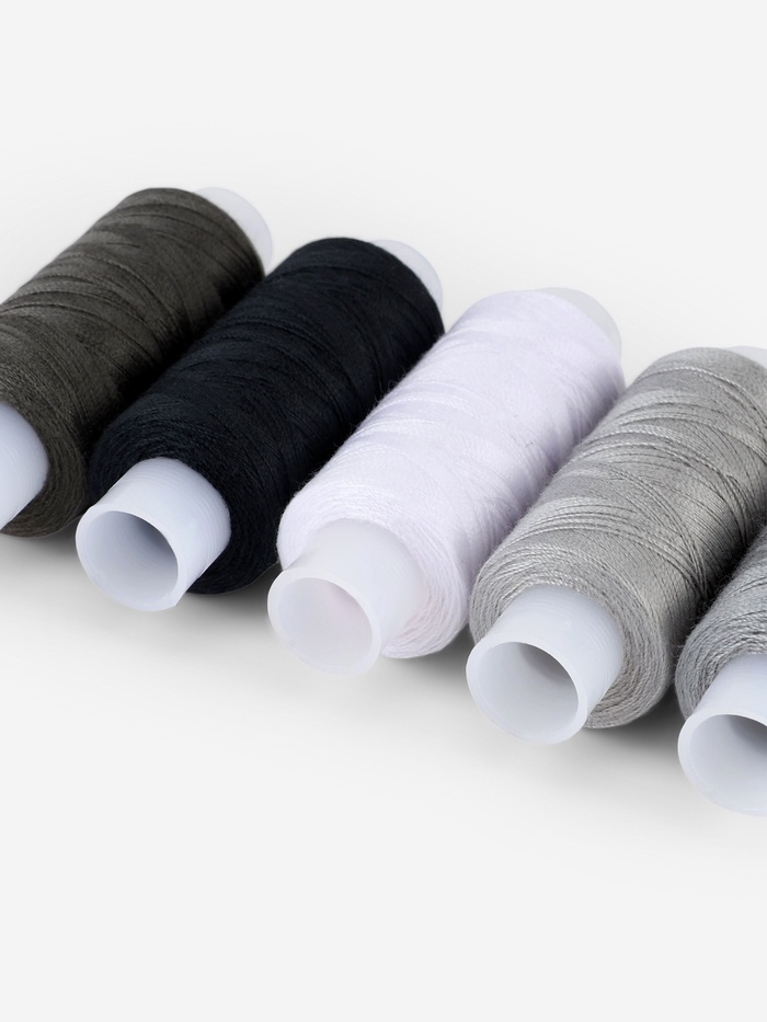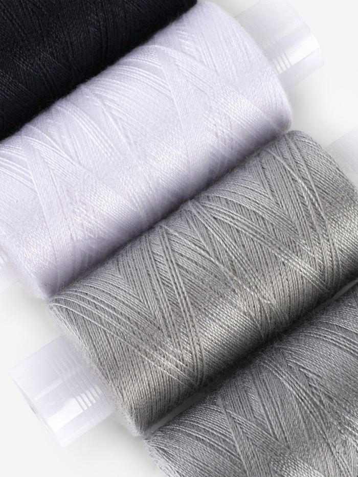 Часто возникает необходимость отремонтировать или подшить одежду. В такой ситуации вас выручит данный набор. Благодаря базовому чёрному цвету он пригодится, не только если вы увлекаетесь рукоделием, но и необходим в повседневной жизни. Нитки прочные и слегка эластичные, равномерные по толщине. Предназначены для работы с тонкими тканями, трикотажем и тканями средней плотности.