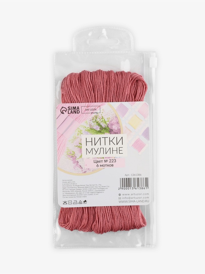Нитки мулине №223, 8±1 м, набор 6 шт., грязно-розовый