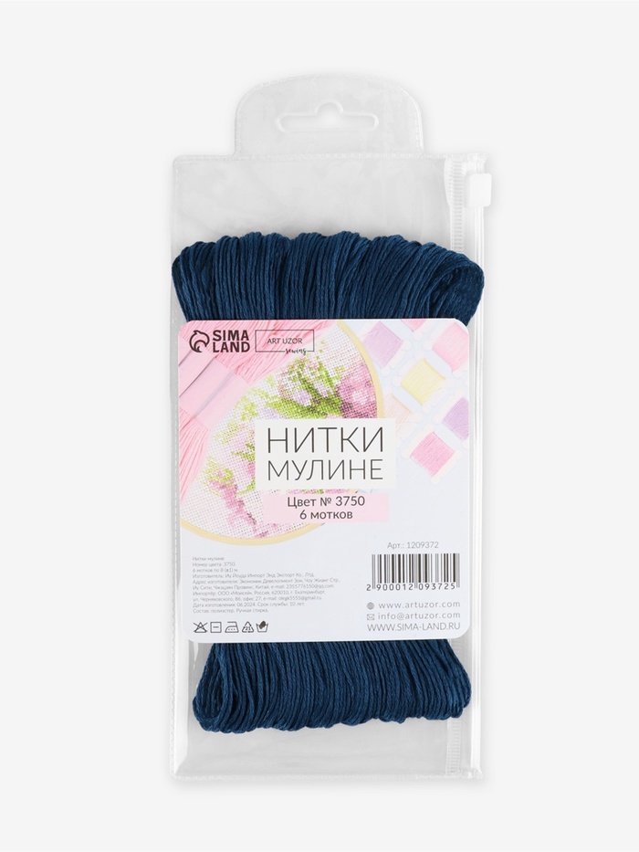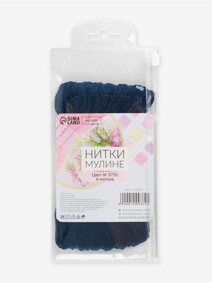 Нитки мулине №3750, 8±1 м, набор 6 шт., тёмно-синий