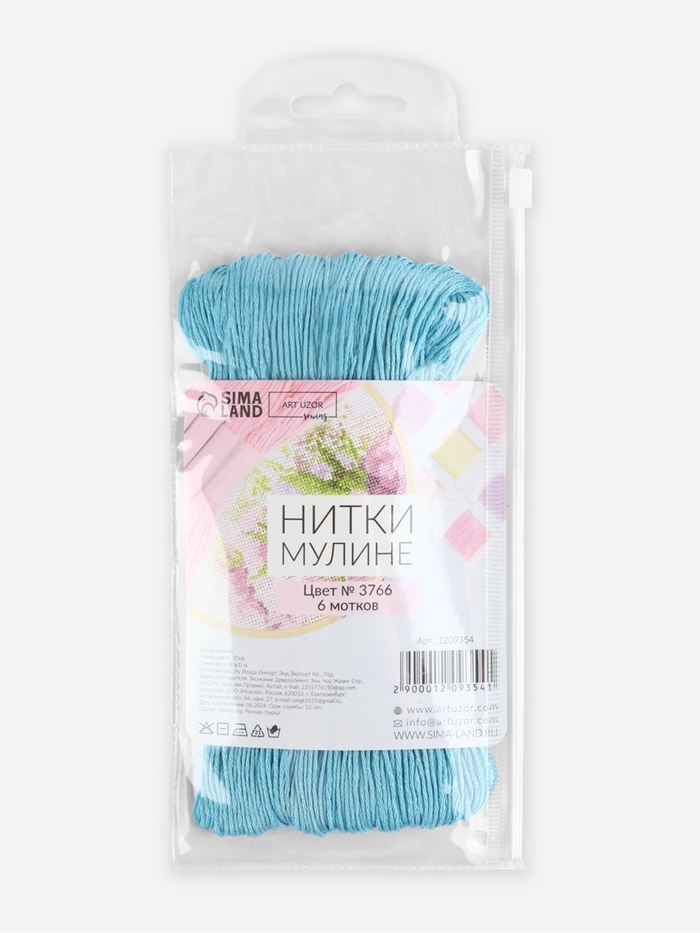 Нитки мулине №3766, 8±1 м, набор 6 шт., голубой