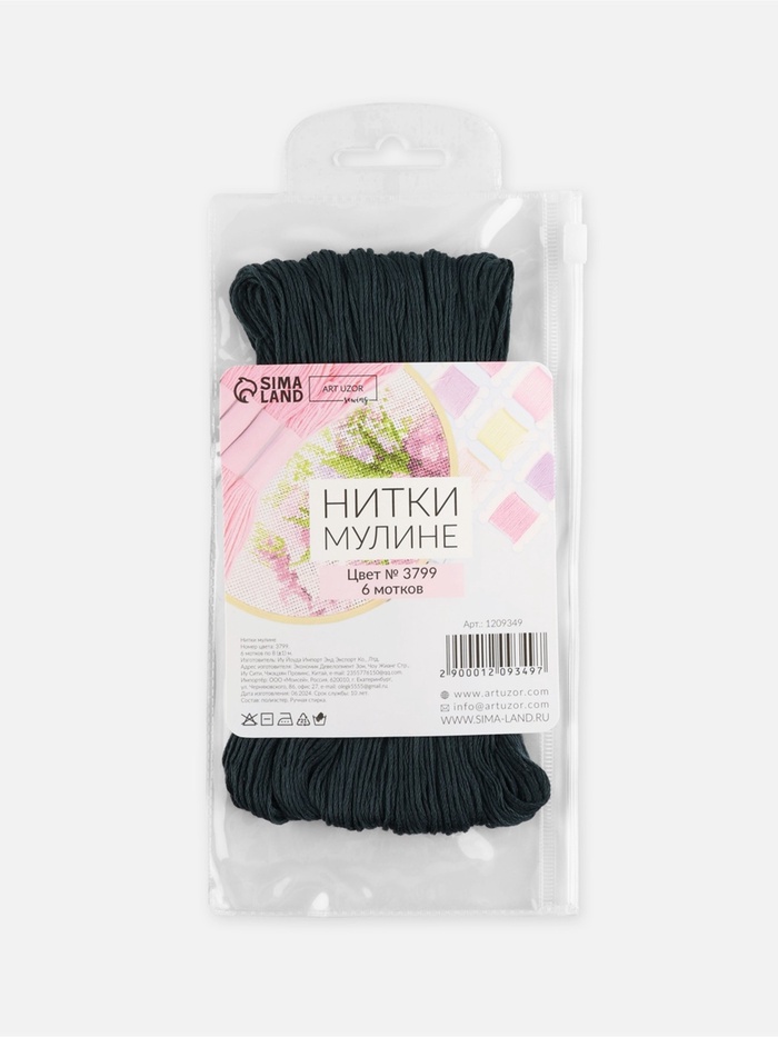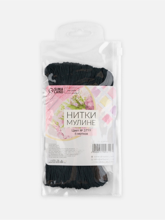 Нитки мулине №3799, 8±1 м, набор 6 шт., серый