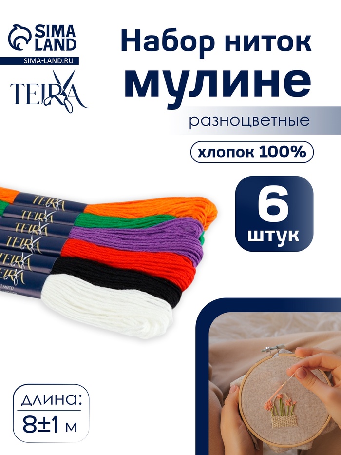 - 6 насыщенных оттенков: в наборе — разноцветные нитки, подходящие как для детских поделок, так и для сложных схем вышивания. Каждый цвет легко отличим, а при смешивании даёт интересные переходы.