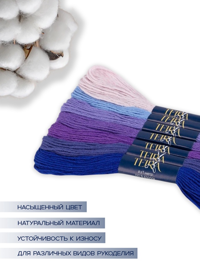 Каждая нить длиной 8±1 метр изготовлена из высококачественного хлопка, что обеспечивает мягкость, прочность и комфорт при работе. Благодаря своей универсальности, эти нити идеально подходят для вышивания крестом, гладью или декорирования текстиля. Их насыщенные тона сохраняют яркость даже после стирки, делая ваши работы долговечными и привлекательными.