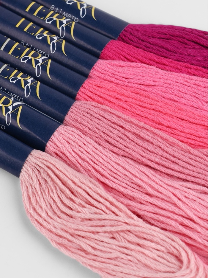 Погрузитесь в мир нежности и тепла с набором премиум мулине от TEIRA , который станет источником вдохновения для ваших творческих проектов. Семь оттенков розового цвета, собранных в этом комплекте, помогут вам создавать работы, наполненные уютом и романтикой. Каждая нить длиной 8±1 метр изготовлена из высококачественного хлопка, что делает процесс работы приятным и комфортным.
