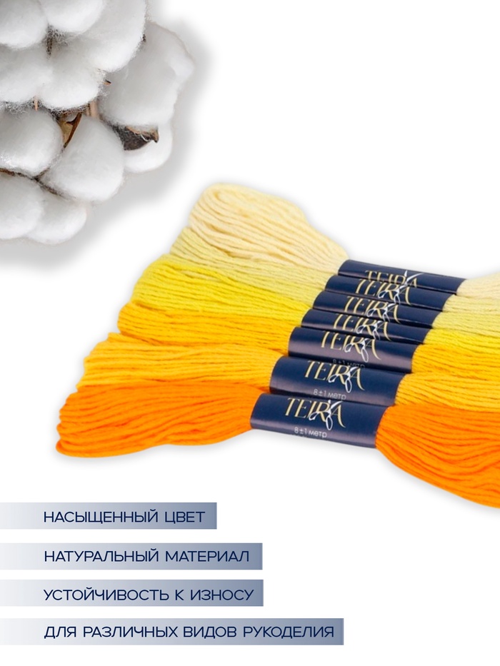 Творите ярко и с настроением! Жёлтые нитки мулине из хлопка — это идеальный выбор для тех, кто любит выделяться. Подходят как для классической вышивки, так и для декоративных поделок. Компактный набор удобен в использовании и хранении.
