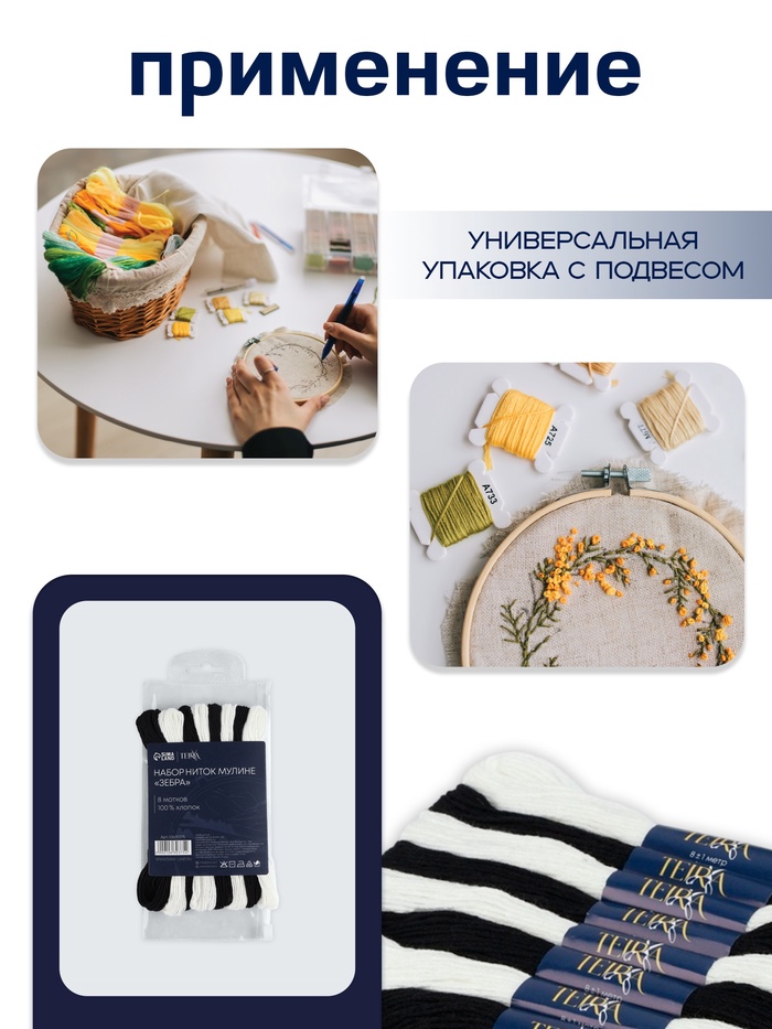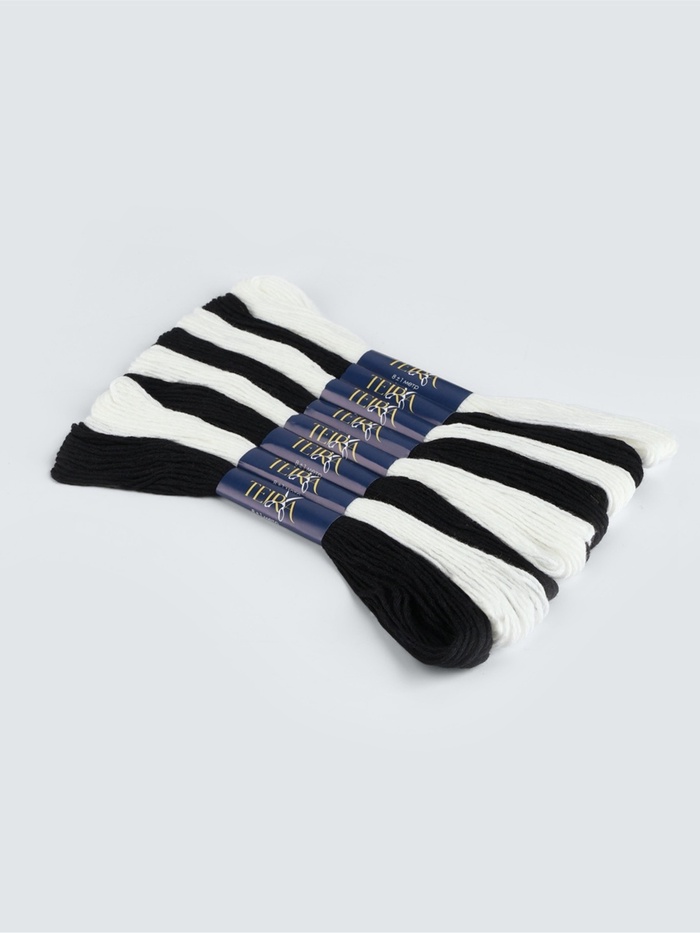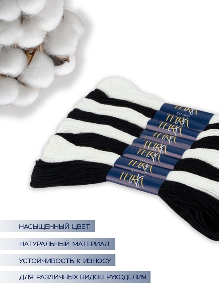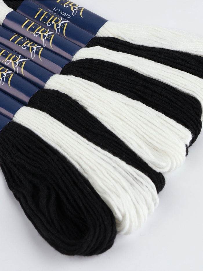 Создавайте безупречные работы с набором нитей, которые станут вашим надёжным союзником в мире чёрно-белой эстетики. Этот комплект из 8 высококачественных хлопковых нитей длиной 8±1 метр каждая — идеальный выбор для воплощения классических и современных идей в вышивке.