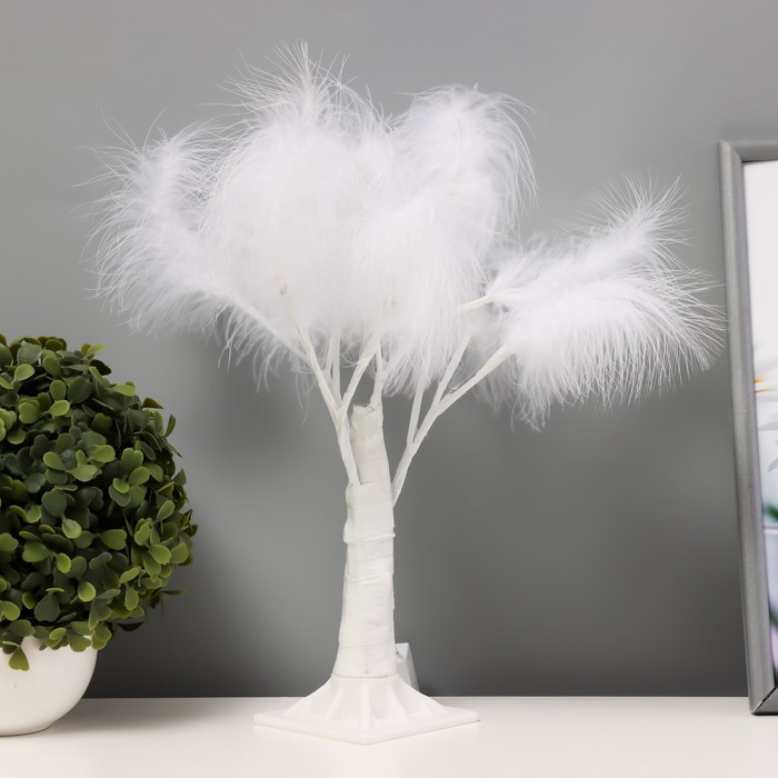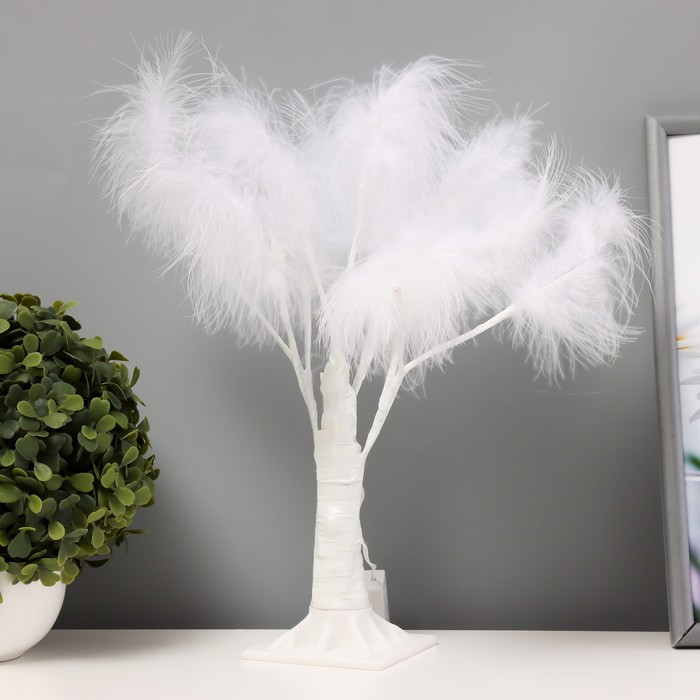 - Элегантный дизайн: Композиция из перьев создает визуально легкий, воздушный образ. Белое свечение подчеркивает детали и вписывается в современные интерьеры, не нарушая цветовую гамму.