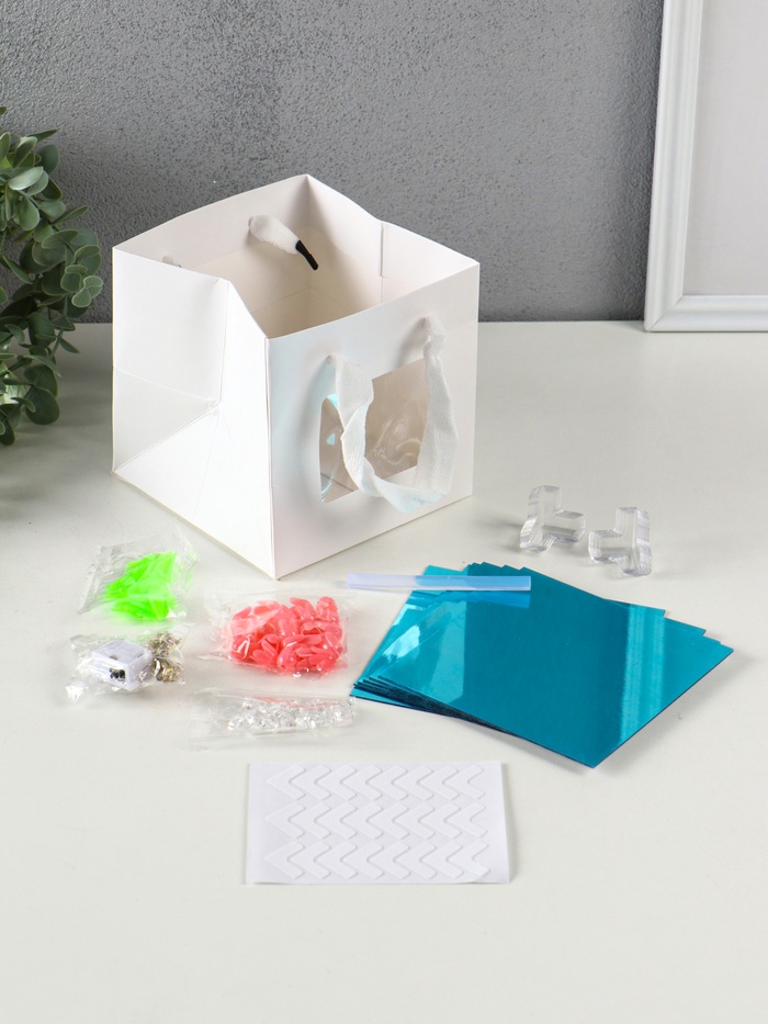 Ночник-зеркало 3D акрил "Бесконечные тюльпаны" 20 цветков в подарочном пакете 12х12х12 см