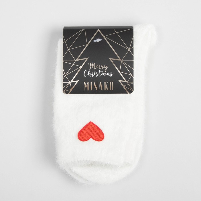Носки махровые MINAKU с сердечком, цвет белый, размер 36-39 (23-25 см)