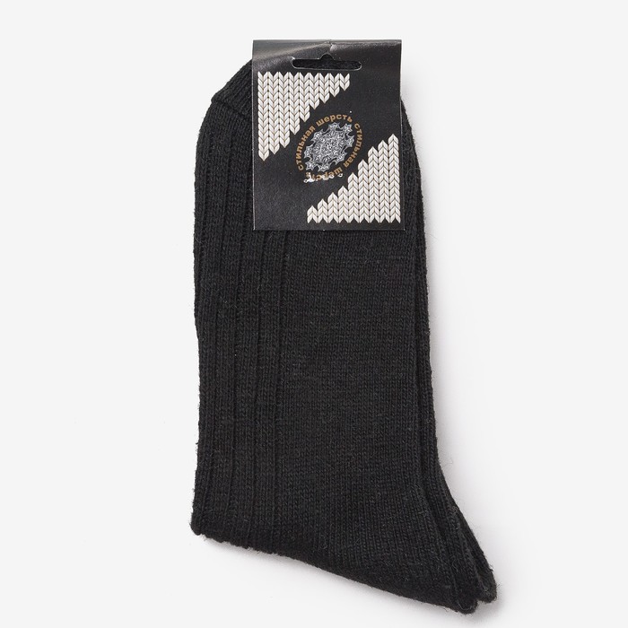 Носки мужские шерстяные цвет чёрный рубчик, размер 27