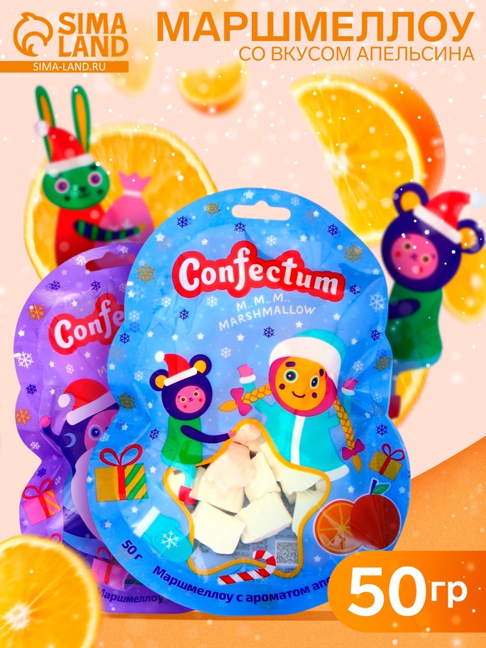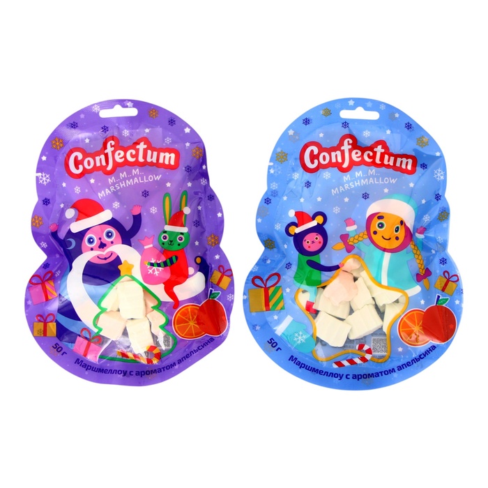 Маршмеллоу "Confectum clouds" Дед Мороз и Снегурочка: елки и звезды — это яркое и радужное угощение, которое порадует как детей, так и взрослых! Упакованные в удобную упаковку 50 г, эти маршмеллоу станут отличным перекусом, идеальным для сладкого угощения в любой ситуации.