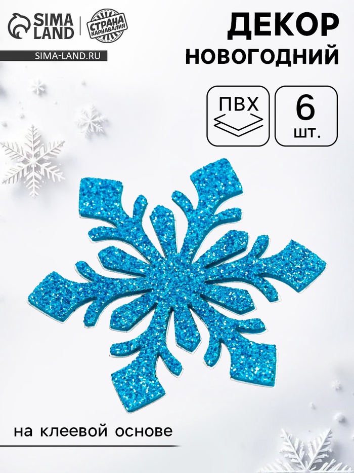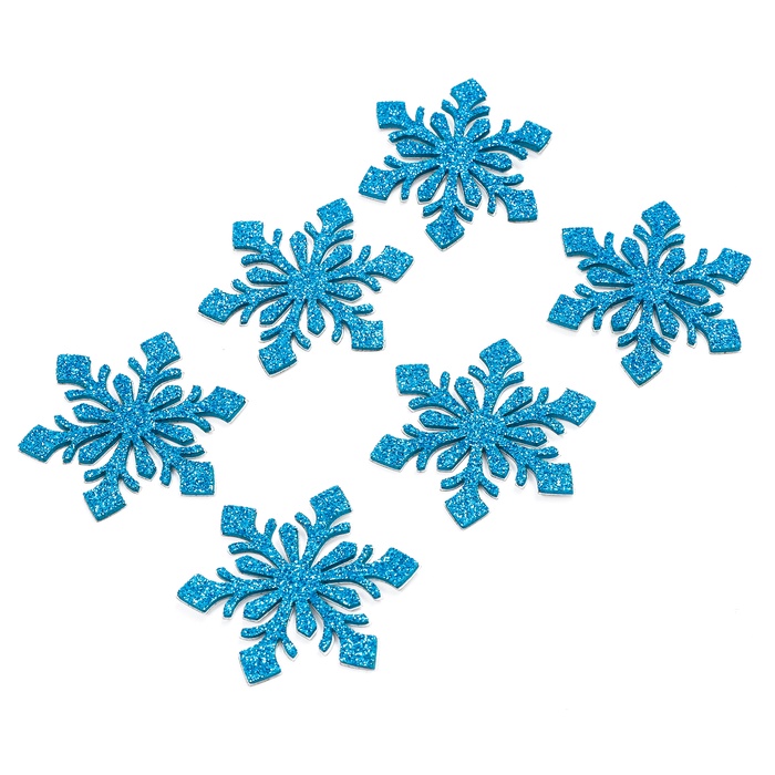 Новый год — самый волшебный праздник в году, и в этот день всё должно быть таким же сказочным и чудесным, особенно декор. В наборе 6 снежинок голубого цвета диаметром 5 см.