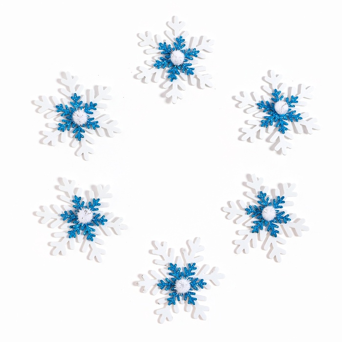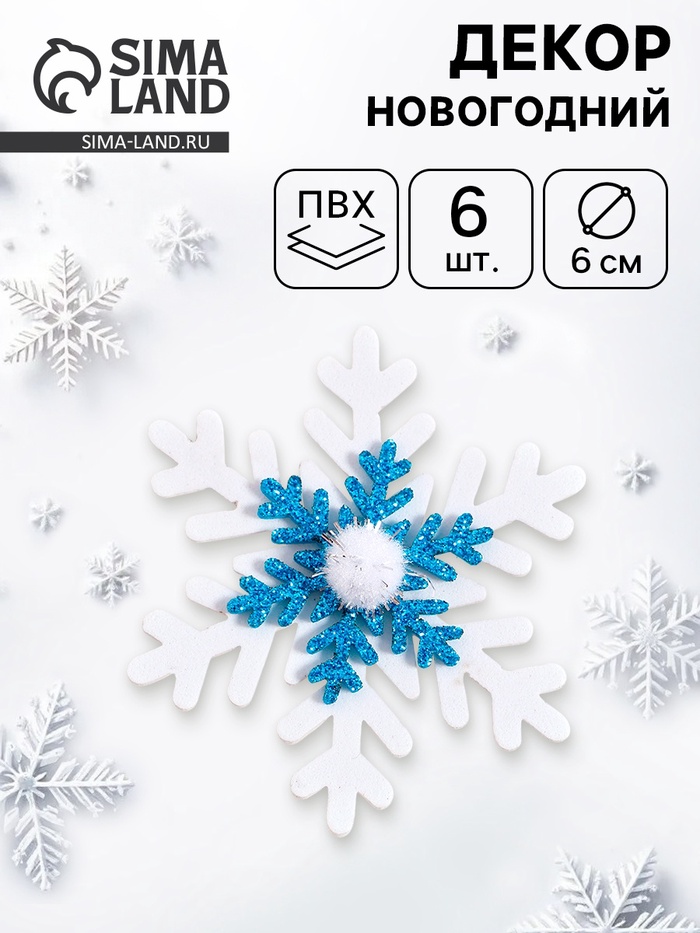 Новый год — самый волшебный праздник в году, и в этот день всё должно быть таким же сказочным и чудесным, особенно декор. В наборе 6 снежинок диаметром 6 см.