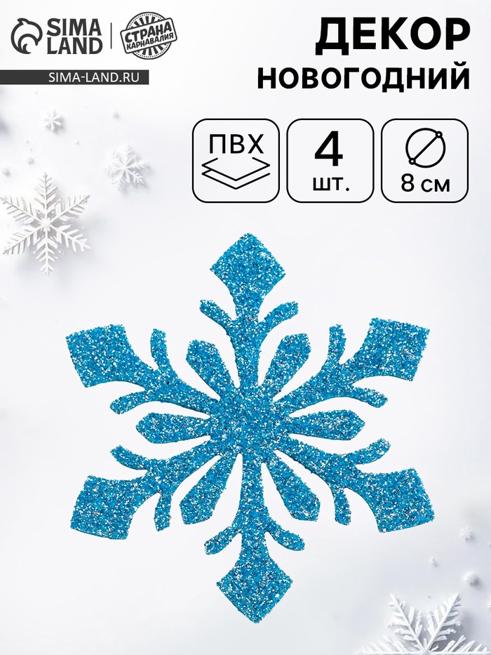 Новый год — самый волшебный праздник в году, и в этот день всё должно быть таким же сказочным и чудесным, особенно декор. В наборе 9 голубых снежинок диаметром 5 см.