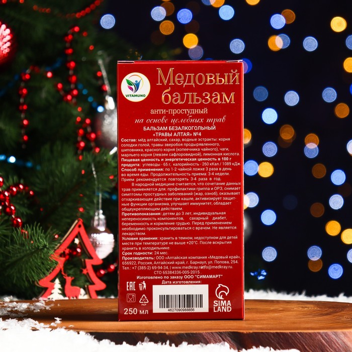 Новогодний медовый бальзам алтайский Анти-простудный, 250 мл