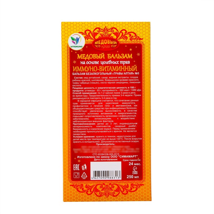 Для производства бальзамов на меду мы используем натуральный Алтайский мед, лекарственные травы, плоды, коренья, собранные в экологически чистых районах горного Алтая.