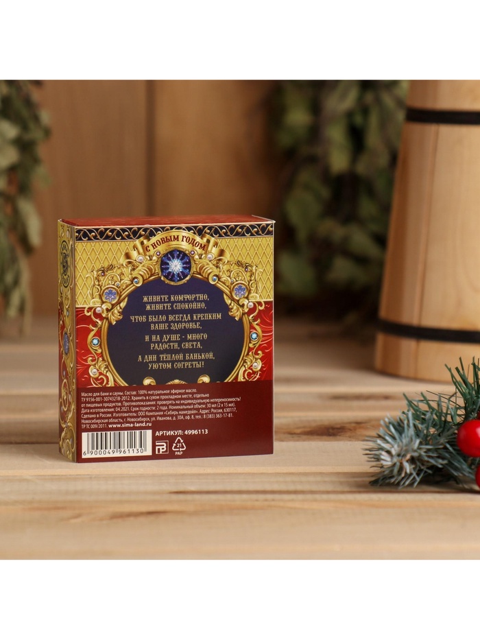 Новогодний набор эфирных масел «С Новым годом, дед мороз», в подарочной коробке, сосна, пихта, 2 шт. по 15 мл