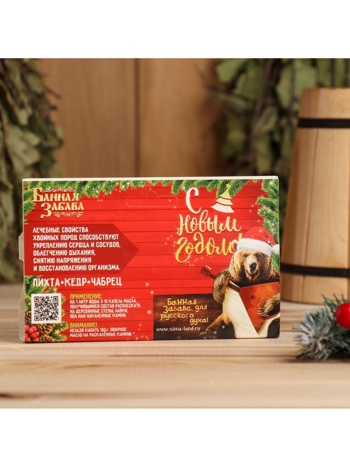 Новогодний набор эфирных масел «Жаркой баньки!», пихта, кедр и чабрец, 3 шт. по 15 мл