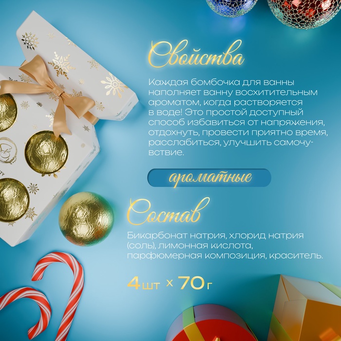 Наслаждайтесь расслабляющими моментами ванной с бомбочкой, ощущая ее благотворное воздействие на вашу кожу, с ароматами нового года, чтобы создать неповторимый опыт для ваших чувств.