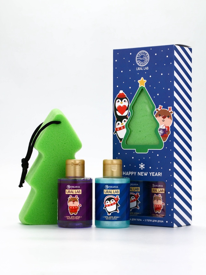 Новогодний подарочный набор косметики Gift for you: гель для душа 2 шт х 100 мл, мочалка для тела, URAL LAB
