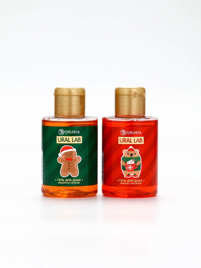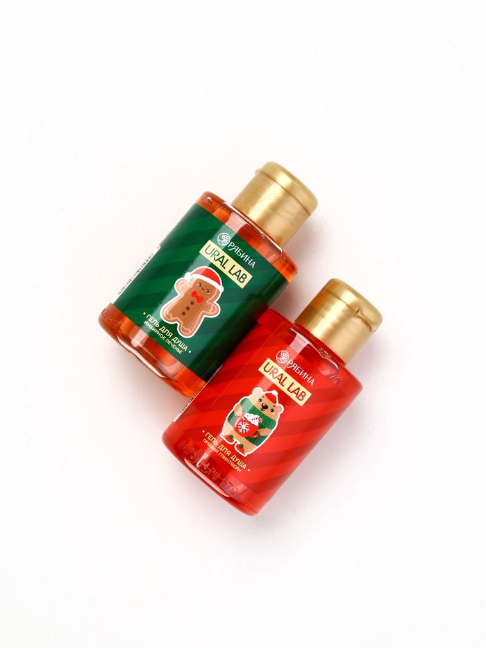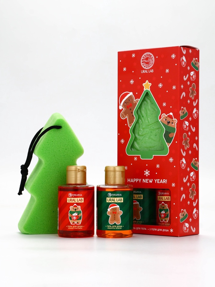 Новогодний подарочный набор косметики Happy new year: гель для душа 2 шт х 100 мл, мочалка для тела, URAL LAB