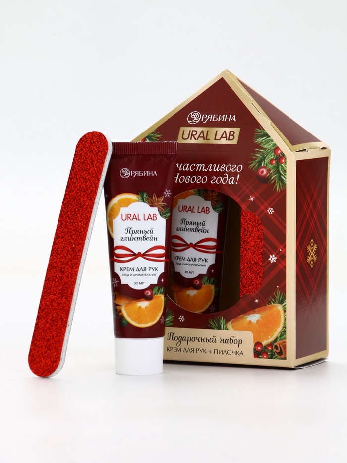 Новогодний подарочный набор косметики: крем для рук и пилка для ногтей, аромат глинтвейн, URAL LAB