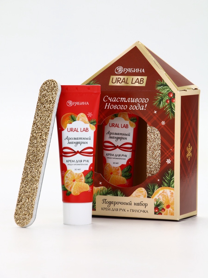 Новогодний подарочный набор косметики: крем для рук и пилка для ногтей, аромат мандарин, URAL LAB